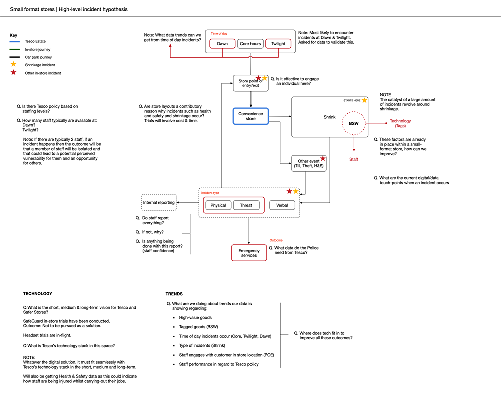 I conducted discovery-led analysis and research for Tesco, where the most common occurrence in stores where staff safety is an issue.